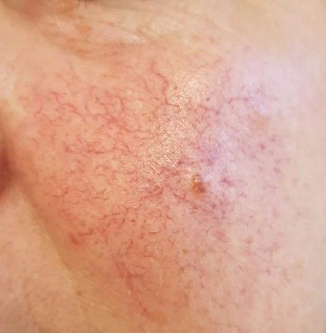 Il s’agit d’une dilatation permanente des petits vaisseaux sanguins du visage.Elle se manifeste par des rougeurs diffuses et parfois par l’apparition de petits vaisseaux visibles.
